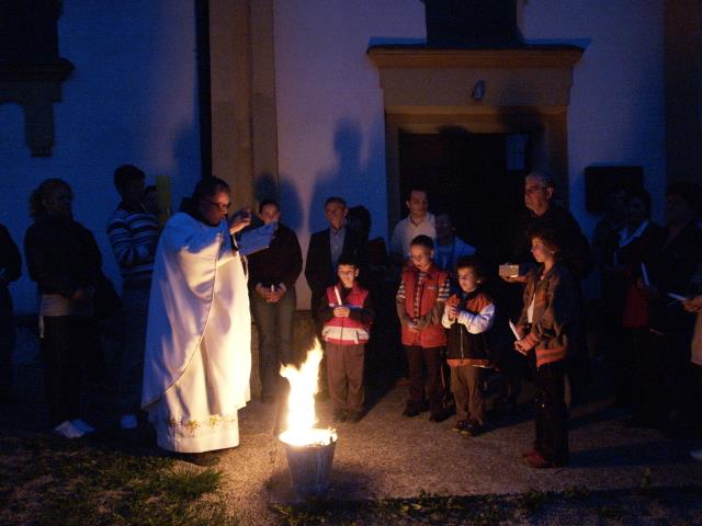 Crkveno dvorište opet je bilo ispunjeno autima raznih registracijskih oznaka, dakako, najviše onima iz Banja Luke. Okupilo se ovaj put ok 70-tak vjernika na Vazmeno bdjenje koje je započelo u dvorištu obredom ognja i obredom svjetla, a onda nakon hvalospjeva uskrsnom svjetlu čitana su biblijska čitanja vezana uz stvaranje svijeta, onu prvu židovsku Pashu (prolaz, prijelaz). "Uskrsloga može prepoznati samo onaj tko iskreno, bezrezervno ljubi. Primjer je učenika 'kojeg je Isus posebno ljubio', Ivan apostol koji apsolutno siguran kaže: Gospodin je! Učenici na putu Emaus ne prepoznaju odmah Isusa, ali dok im je pričao o Pismima njima je srce 'gorjelo', naravno od ljubavi. Kad je dostiglo vrhunac u lomljenju kruha, učenicima se otvaraju oči i oni prepoznaju Isusa pošto su ga maksimalno uzljubili uvjereni Riječju Božjom." Ovo je samo dio iz propovijedi fra Duje, župnika Barlovaca. Na kraju je blagoslovljena hrana. Prekrasnu večer i vazmene obrede, svojim pjevanjem uljepšali su vjernici predvođeni sestrom Marinom.